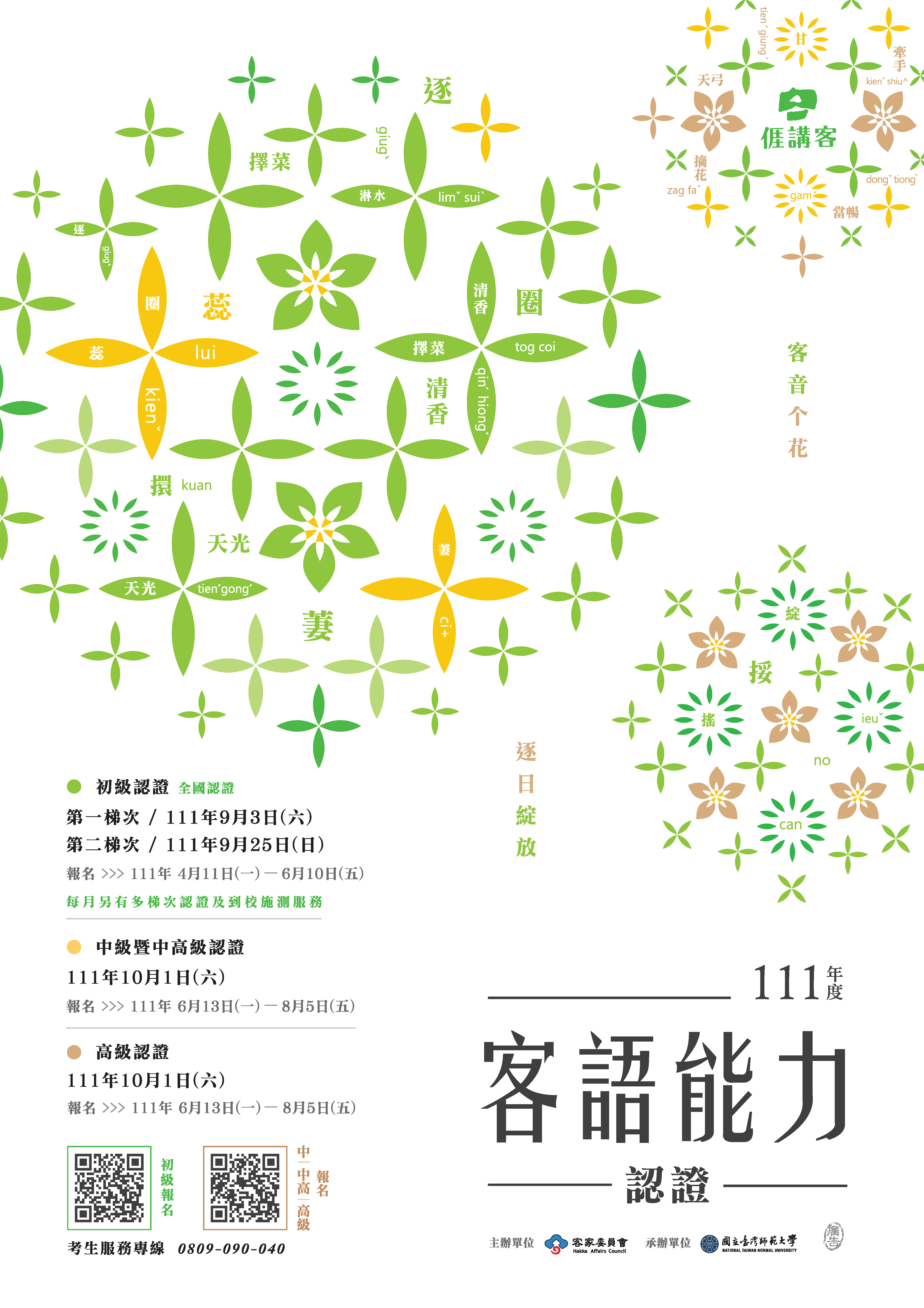 轉知:客家委員會委託國立臺灣師範大學辦理「111年度客語能力初級認證」、「111年度客語能力中級暨中高級認證」及「111年度客語能力高級認證」報名事宜